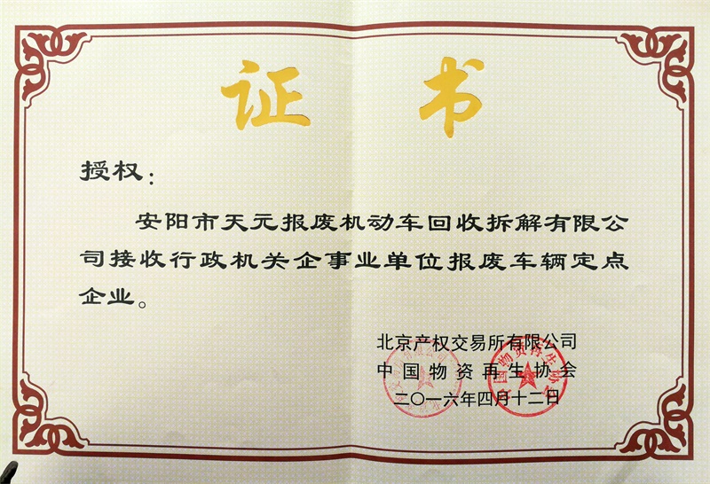? 安陽市天元報廢機(jī)動車回收拆解有限公司